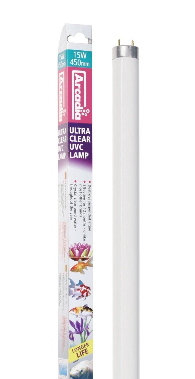 The UV output of the lamps degrades with time, and so they will need replacing periodically. Unlike many other brands the Arcadia range of 'Ultra Clear' UVC lamps, will perform constantly for a 12 month period - ONE YEAR - ONE LAMP.