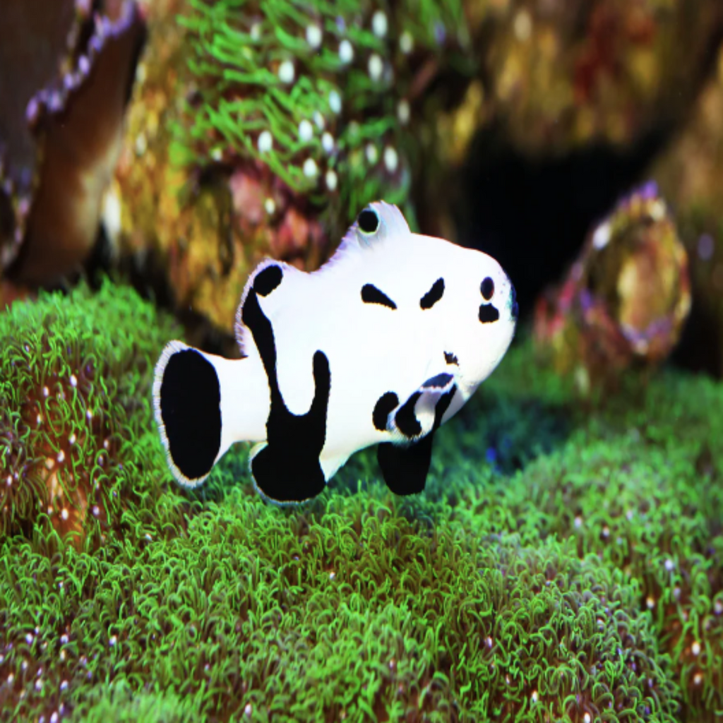 The Black Storm Clownfish Pair, a remarkable variant of the classic clownfish, boasts a dramatic, swirling pattern of black and white, making them a visually captivating addition to marine aquariums. Known for their unique appearance and strong pair bonds, these fish are a favourite among aquarists seeking both aesthetic appeal and interesting behaviour. Adaptable and relatively easy to care for, the Black Storm Clownfish are suitable for a range of marine setups, from beginner tanks to advanced reef systems.