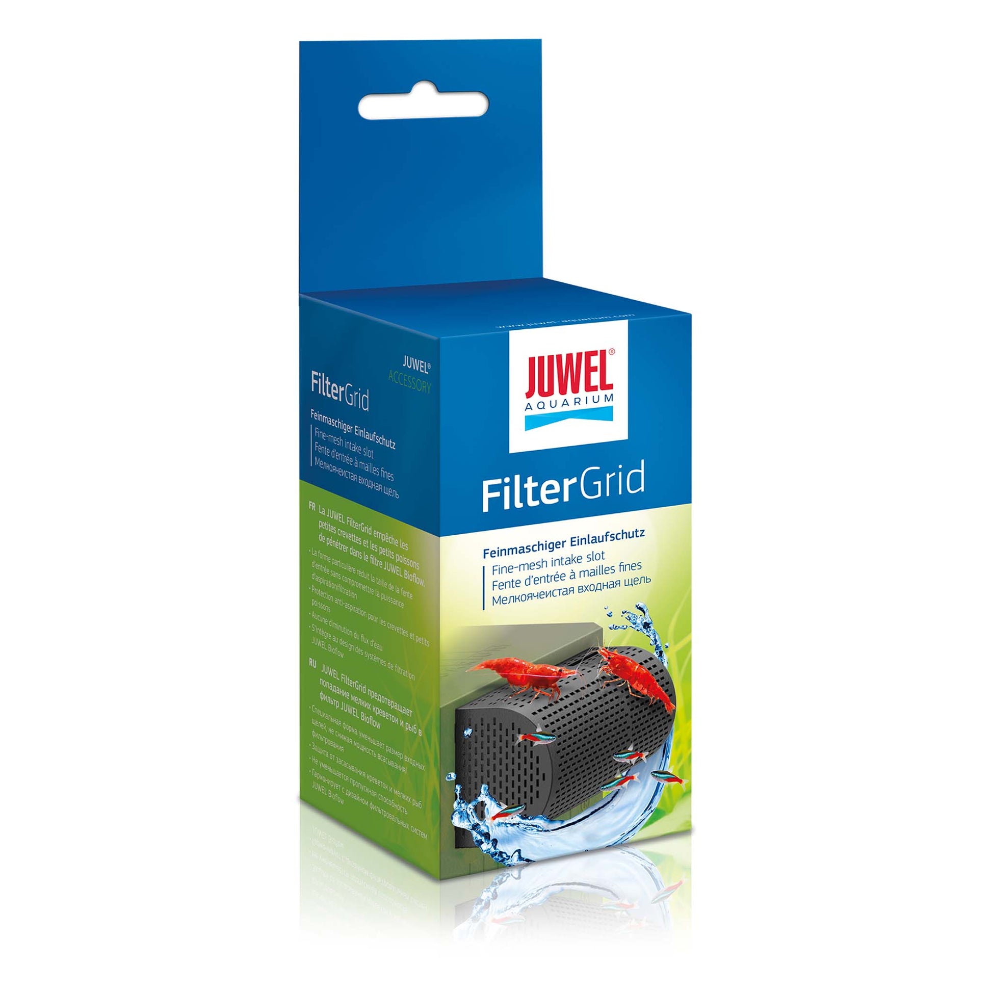 Juwel FilterGrid, fine-mesh intake slot. The Juwel FilterGrid prevents very small shrimp and fish from entering the Juwel Bioflow Filter. This a new add-on component and is designed to fit all models of the Bioflow range. It features smaller intake slots, intake protection, and no reduction of the flow rate. The smaller intake slots are specially shaped to allow for a reduction of the size of the intake slots at the top and the sides. The carefully coordinated components blend perfectly with the design of the Juwel Bioflow Filter. With the intake protection, the Juwel FilterGrid prevents very small shrimp and fish from entering the Juwel Bioflow Filter. There is also no reduction of the flow rate as the specially developed shape of the FilterGrid continues to ensure consistently strong sucking and filtering performance of the Bioflow Filter. Suitable for use in fresh water and marine aquariums. Dimensions: 7 x 5.5 x 5.5cm & 12 x 2.5 x 1.5cm.