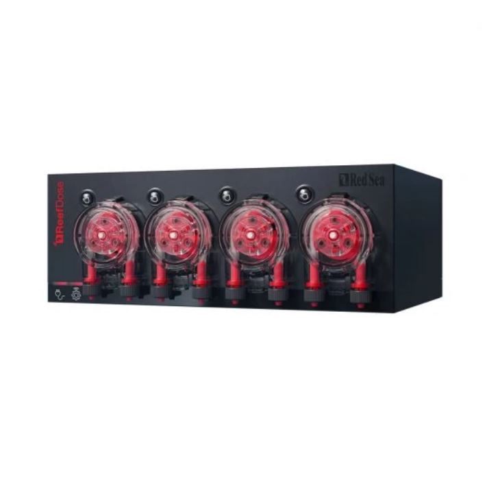 ReefDose uses bespoke (patent-pending) single-drop-accuracy dosing heads together with an advanced controller that provides a full suite of features.