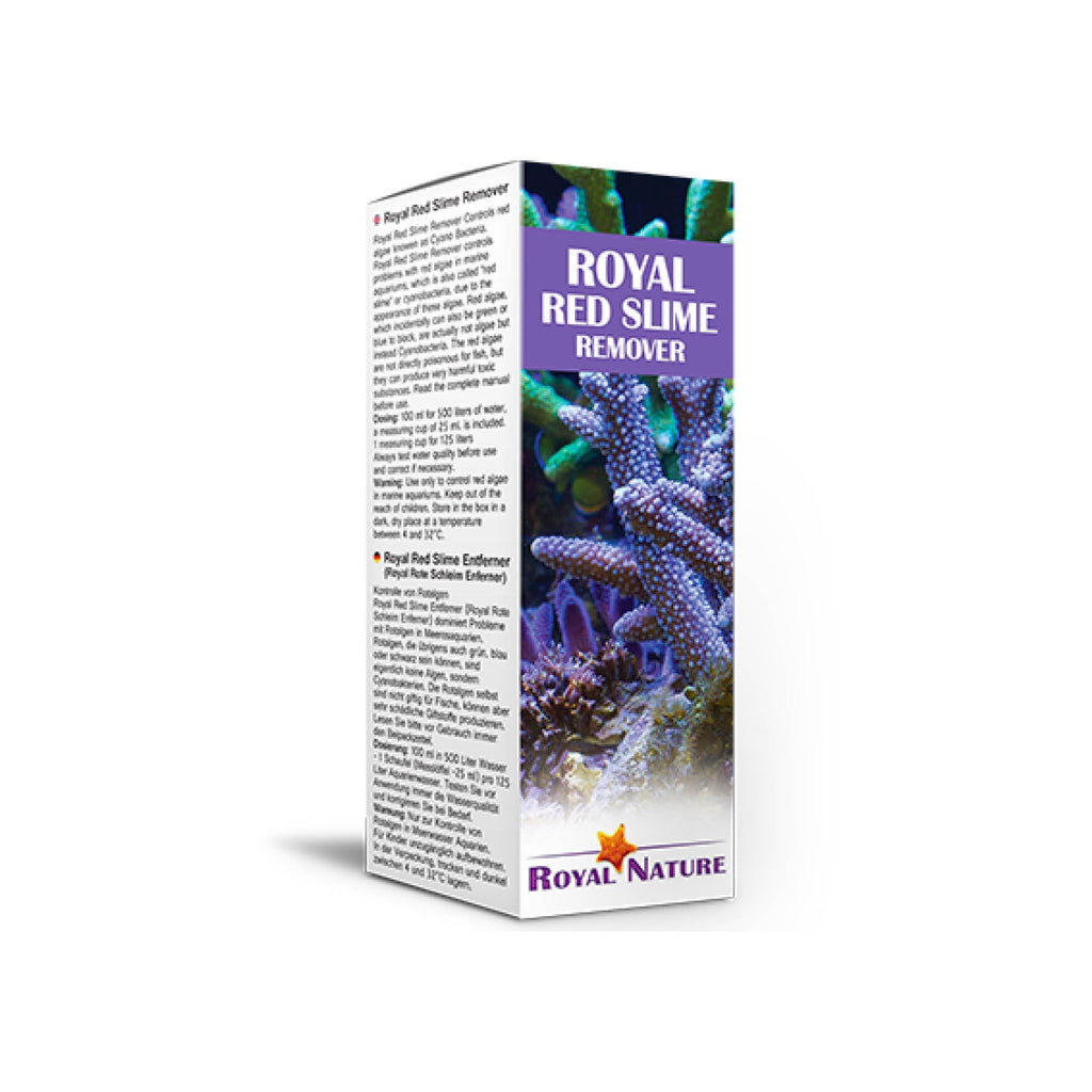 Royal Red Slime Remover controls problems with red algae in marine aquariums, also called "red slime" or cyanobacteria, due to the appearance of these algae. Red algae, which incidentally can also be green or black, are not algae but instead Cyanobacteria.