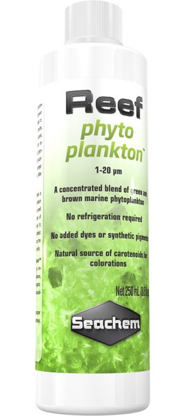 Seachem Reef Phytoplankton is a concentrated blend of green and brown marine phytoplankton designed to provide the essential fatty acids, proteins, vitamins, amino acids, with biological carotenoids for a balanced invertebrate diet.