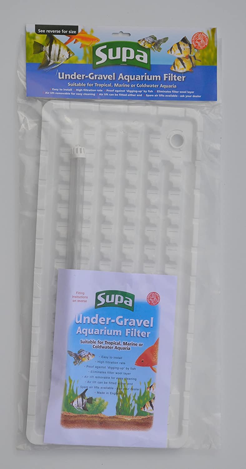 Under-Gravel Aquarium Filters are suitable for Tropical, Marine or Coldwater Aquaria. They are to install, offer proof against "digging-up" by fish, have a high filtration rate, eliminates the filter wool layer and also the air lift tube can be easily cleaned & positioned at either end of the filter