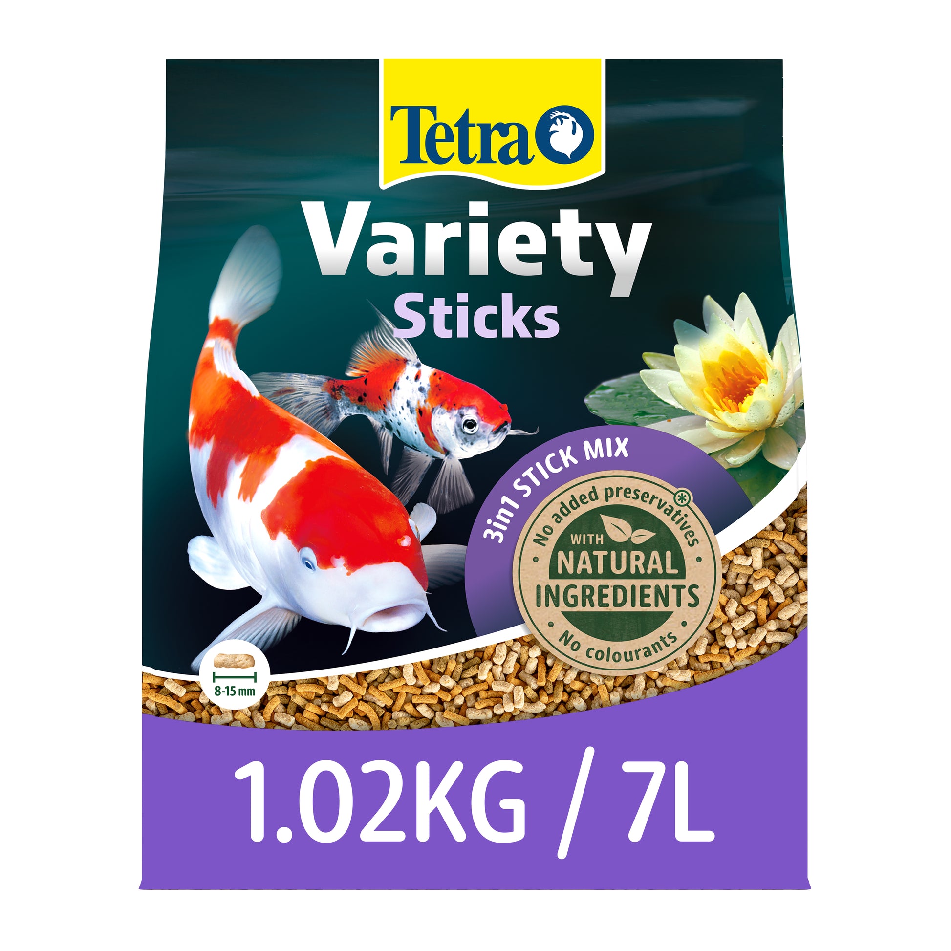 A mix of three different varieties of food stick, to provide a complete yet varied diet for all pond fish.
